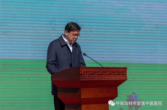 张佰成市长致辞。他指出,内蒙古医科大学是少数民族地区最早成立的高等医学院校之一,多年来坚持以教育教学为立校之本,以科学研究为强校之路,致力于培养高素质医药卫生人才,为地区经济社会发展和人民群众身体健康做出了突出贡献。呼和浩特市蒙医中医医院始终秉承蒙中医为主、蒙中西医相结合的办院方针,以民族医疗特色和优质蒙医中医服务赢得了群众的信任和广泛的好评。