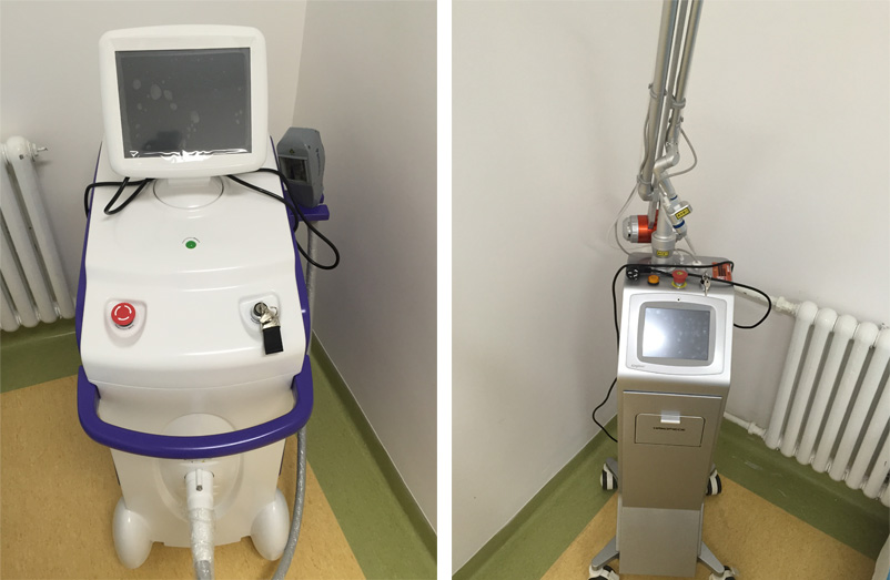 前配置设备及相关治疗如下:1、二氧化碳点阵激光治疗仪(除皱、皮肤提拉美容、痤疮疤痕、雀斑、老年斑、红血丝等);2、微波治疗仪(治疗各种疣、皮赘、
