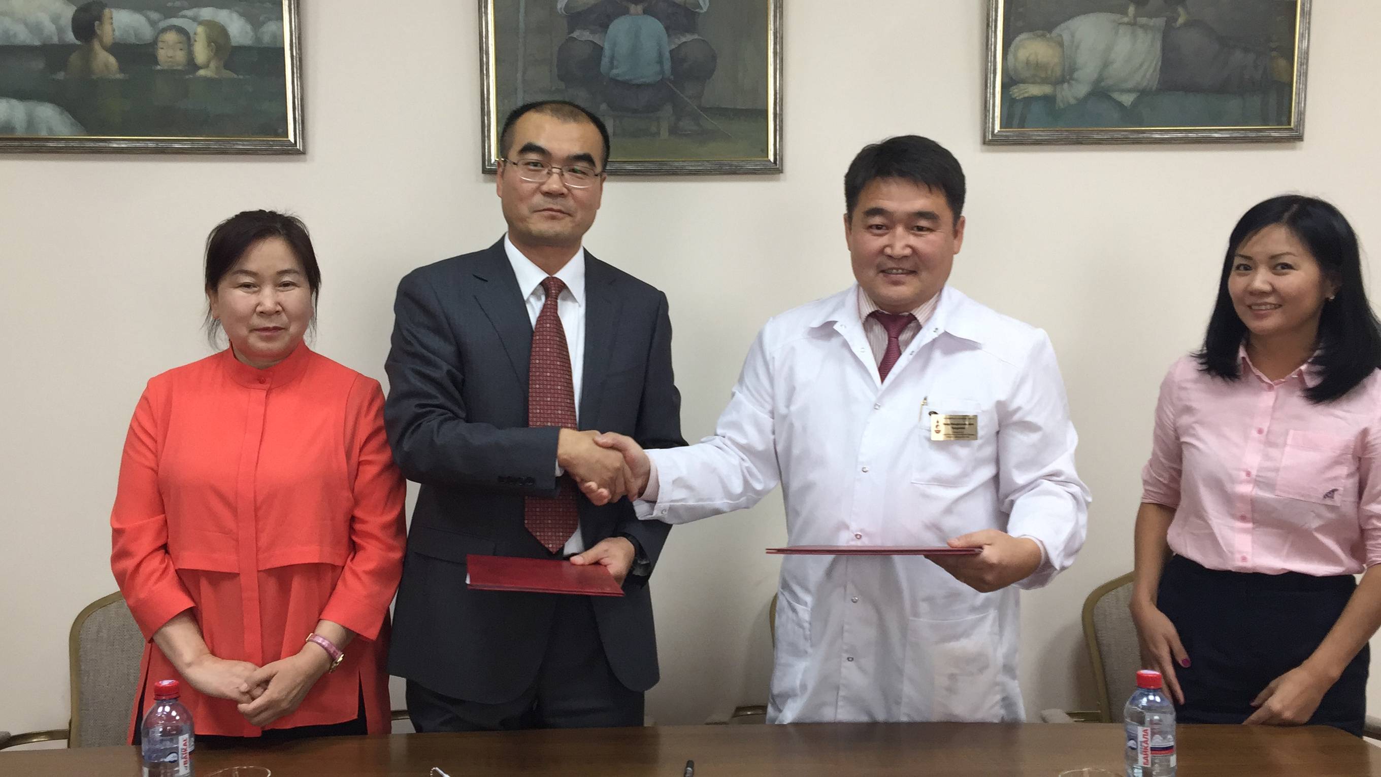 本次出访中副院长赵红兵代表av影片直播 与东方医学中心巴雅尔院长签署了医疗合作意向书。并在东方医学中心总部和 贝加尔湖医疗康复养护中心进行了三天的义诊、讲座和技能展示活动。