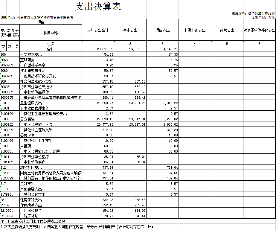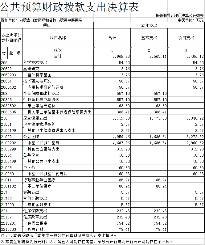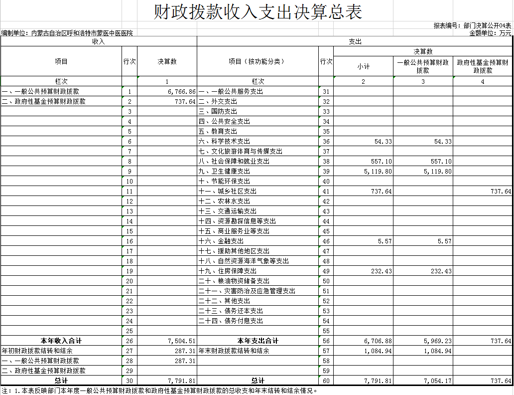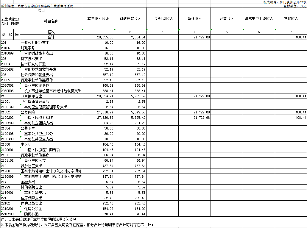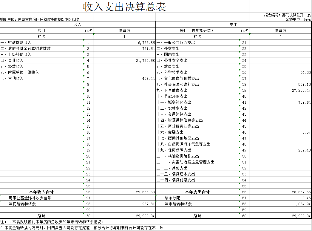 内蒙古自治区呼和浩特市蒙医中医医院 2019年度决算公开报告