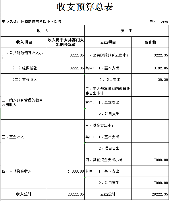 呼和浩特市蒙医中医医院收支预算总表